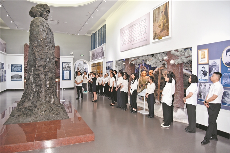 纪念馆内,讲解员深情朗诵《卢沟晓月》,将人们的思绪带回“卢沟桥事变”那个山河破碎、狼烟四起的夜晚。随后,大家跟随讲解员参观了“黑土英魂陈列”,在一件件珍贵文物与历史画卷中重温峥嵘岁月,感悟英烈精神。