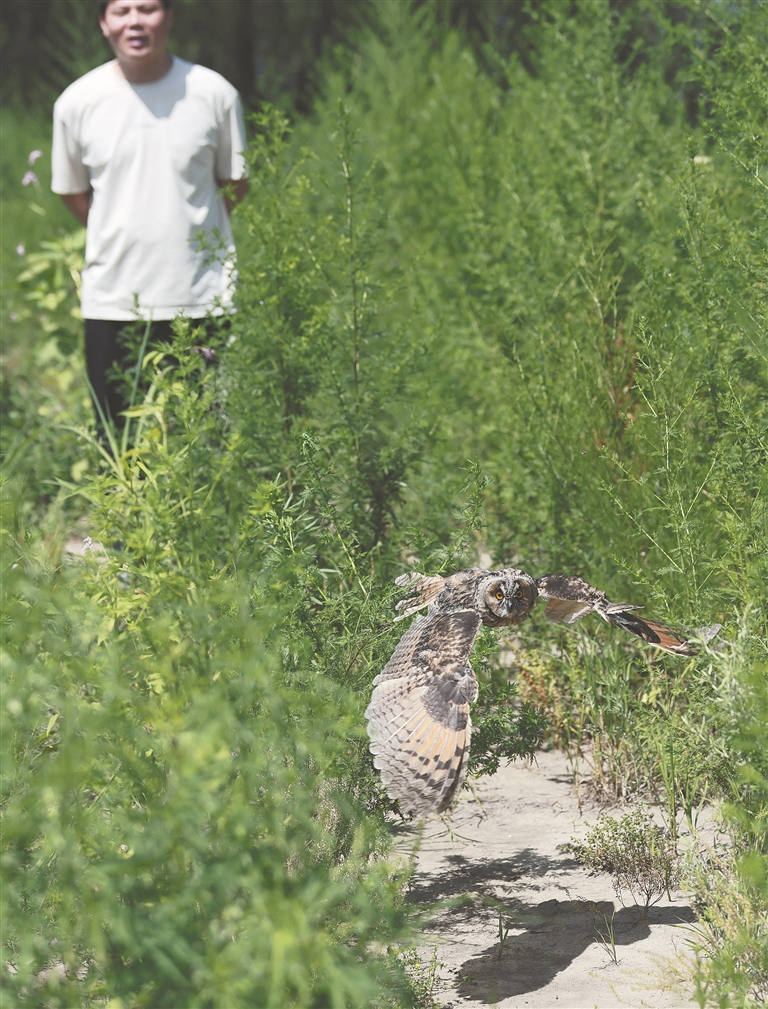 7月14日,在哈尔滨市江北中环路湿地,哈尔滨市林业和草原科研中心的工作人员成功放飞了一只康复的国家二级重点保护野生动物白琵鹭。随后,两只同样经过精心救护的国家二级保护猛禽长耳鸮和短耳鸮也振翅高飞,重返大自然。