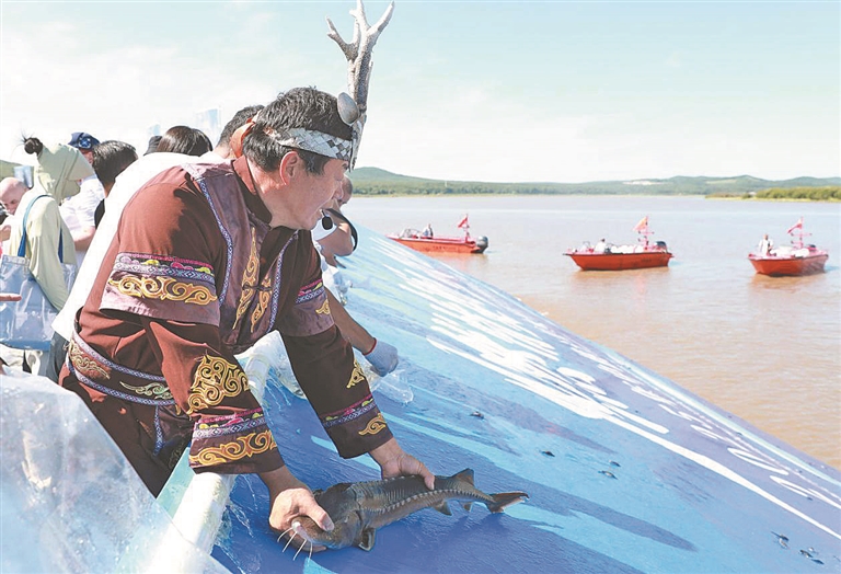 本报15日讯(记者刘大泳)15日,“燃情夏日 鱼跃龙江”——2025年中俄边境水域联合增殖放流活动在抚远市黑龙江畔启幕,15万尾达氏鳇、30万尾史氏鲟鱼苗及100尾3龄达氏鳇顺流跃入水中,开启自然生命旅程。
