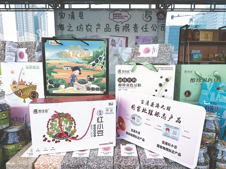 七星泡镇的展台前,摆放着用本地糯玉米制作成的浆包、浆糕等产品。七星泡镇政府办公室主任祁之欣介绍:“宝清县的土壤里富含硒元素,种出来的农作物都富硒,对人体健康有益。现在的消费者注重饮食健康,目前这些深加工农产品很受市场欢迎,希望通过此次展销进一步拓宽销路,助力企业发展。”