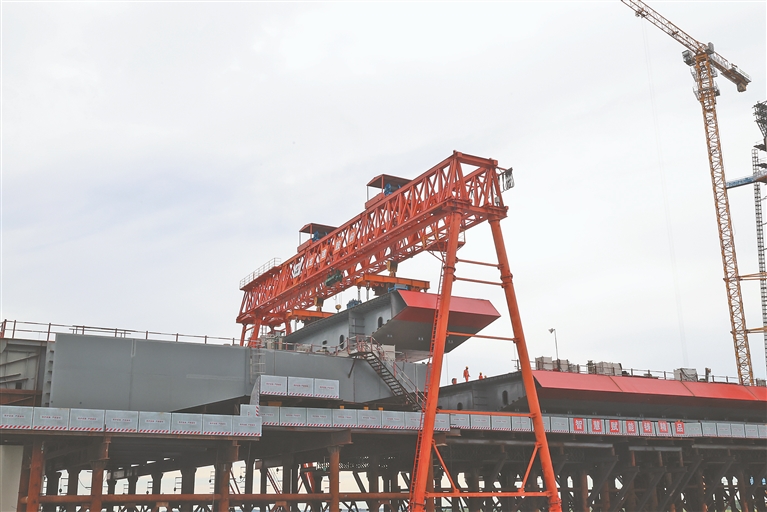 本报讯(宋杨 记者吴利红)日前,哈尔滨都市圈环线西南环段节点性控制工程——松花江特大桥主桥钢箱梁顶推施工完成高精度合龙。这一关键节点的告捷,极大地加快了项目整体推进速度,为桥梁后续缆索体系施工、桥面施工奠定了坚实基础,同时也标志着中国严寒地区自锚式双塔悬索桥建设技术取得新突破。