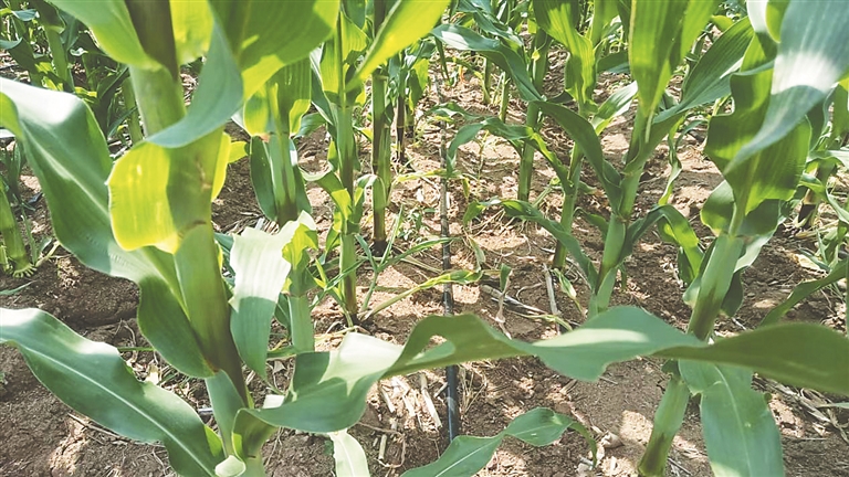 滴灌管道将水肥精准输送至玉米根系。王新新摄
