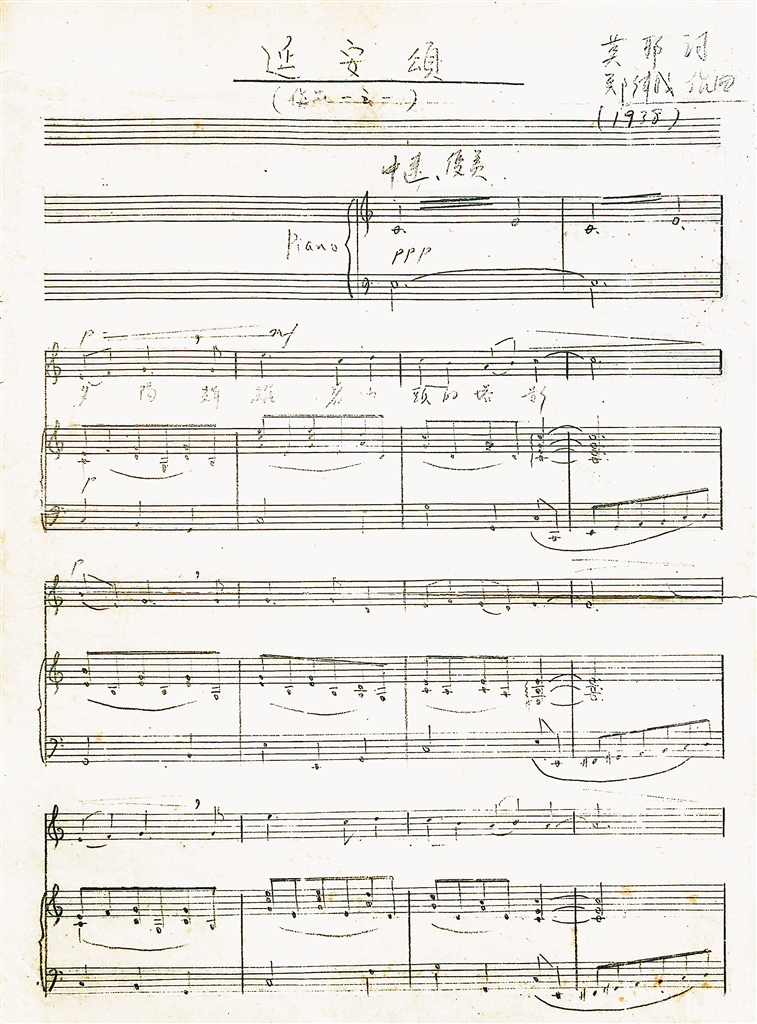 《延安颂》曲谱手稿。