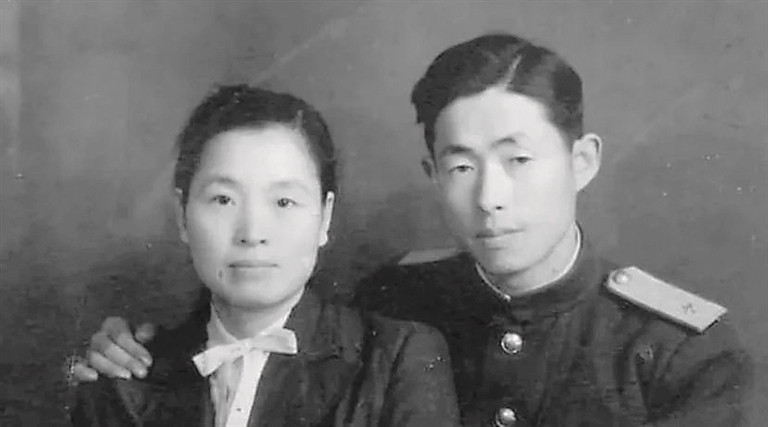 郑律成与丁雪松军装图。