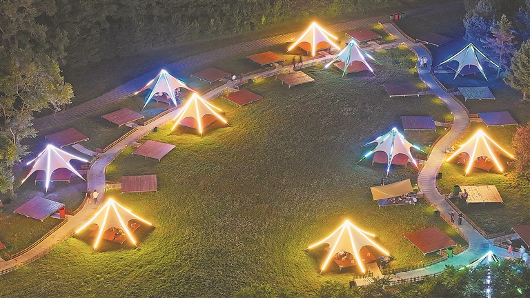 最令人惊叹的是五指山公园的蜕变。作为鹤岗市第一批沉陷区动迁小区改造项目,这里曾是“又脏又乱的臭水泡子,走道都得绕着走”。如今,星空露营地日均接待游客超万人次,白天这里是亲子嬉戏的乐园,夜晚则被激光投影染成梦幻世界,市民在光影中翩翩起舞,远道而来的游客举着相机舍不得放下。“市委市政府用一个个‘家门口的生态蝶变’,让宜居指数稳步攀升。”鹤岗市城管执法局园林中心规划设计科科长王元介绍,近年来新建扩建的五指山体育公园、天水湖公园、欣虹湖公园等,打造了15分钟健身圈,“为市民提供了更多更美更优质的休闲空间,幸福感、获得感实实在在。”