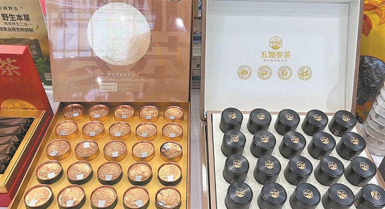 虎林市的刺五加茶散发出独特的药香,清苦中略带回甘的浓郁口感,吸引许多参观者驻足细品。