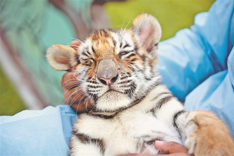 国际老虎日在即,哈尔滨市东北虎林园迎来游客观虎热潮,憨态可掬的幼虎和参观投喂成年东北虎是最受游客关注的焦点。萌虎一会与同伴之间的嬉戏打闹,一会又藏到饲养员怀中大睡,一会趁机“偷袭”饲养员的场景惹得游人纷纷拿出手机记录这一可爱瞬间。