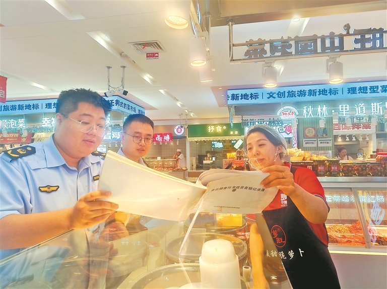 执法人员对商户进行食品安全事项指导。