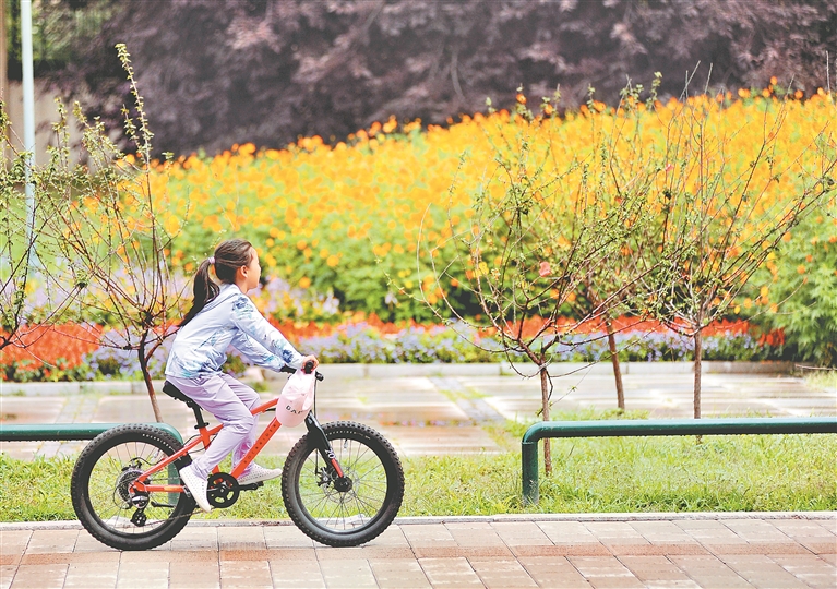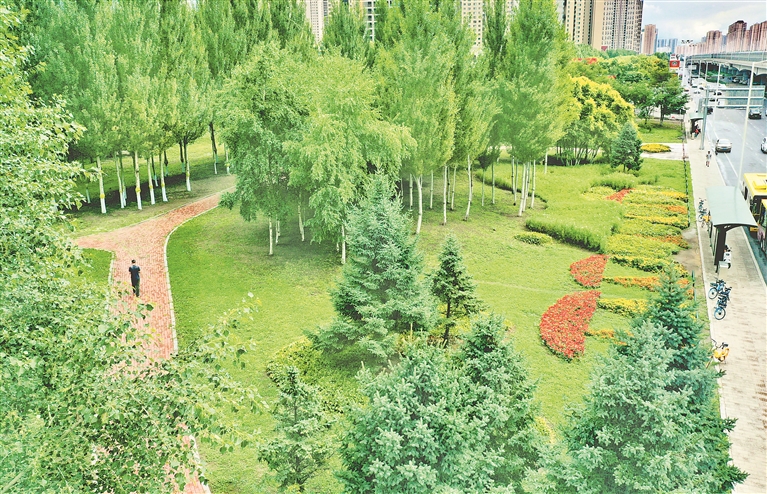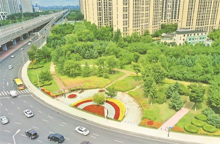3日,哈尔滨市道里区阳明滩大道附近,行人从“口袋公园”旁走过。今年,当地新建了多个“口袋公园”,占地面积数万平方米。公园里,树木生长茂盛,鲜花争奇斗艳,小道从园中穿过,道旁设有座椅、健身器材等。许多附近居民到这里休闲、赏景。