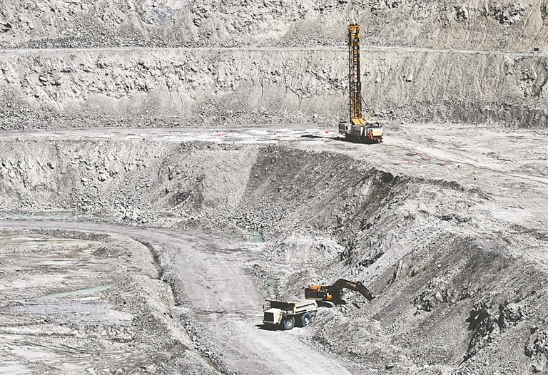 溯“链”而上,来到露天钼矿采区,车轮高2.7米的矿用自卸车有序穿梭,将矿石运往选矿厂。作为亚洲最大的单体钼矿,这里年处理矿石超1500万吨,钼精矿单系列处理能力全国第一,国内市场占有率达30%左右。