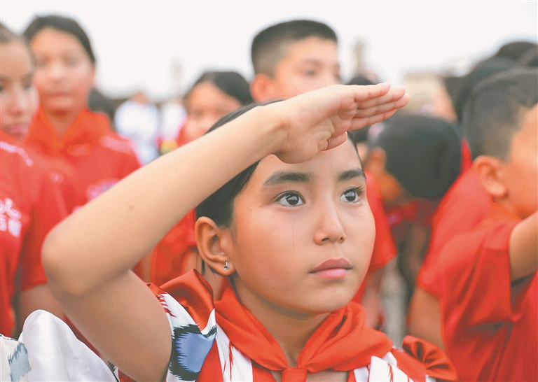 盛夏的清晨,天安门广场的石砖还带着夜露的微凉。小姑娘帕提曼罕·排日海提踮起脚尖,目光穿过层层人群,追随着冉冉升起的五星红旗,激动的泪水淌过脸颊。这是她人生中第一次亲见课本里描述的庄严场景。