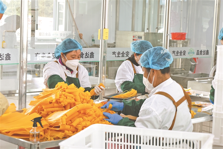 村民在村办面条厂务工。