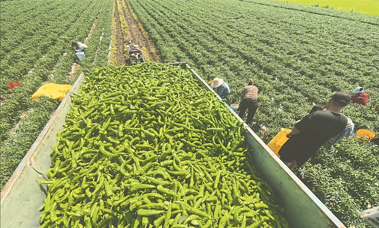 同张佳辉一样满心欢喜的还有辣椒收购点的务工人员。从田间采摘下来的辣椒第一时间被运送到收购点进行分拣、装箱,这为附近的农民提供了增收新渠道。72岁的李新连是收购点的务工人员,工作不累,离家较近,每天能收入120元左右,十分满足。李新连说:“我这么大岁数在家里待不住,在这里一夏天能赚1万元,太高兴了!”