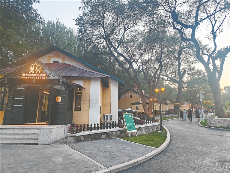当俄罗斯巴扬琴悠扬的旋律漫过露台,身着民族服饰的舞者翩然旋转,萨克斯与小提琴的乐音在夏夜空气中交织流淌,徜徉街区的市民游客纷纷沉醉其中,放空心情,随之摇摆。俄式餐厅与咖啡馆内座无虚席,刀叉轻碰的声响伴着窗外乐声。