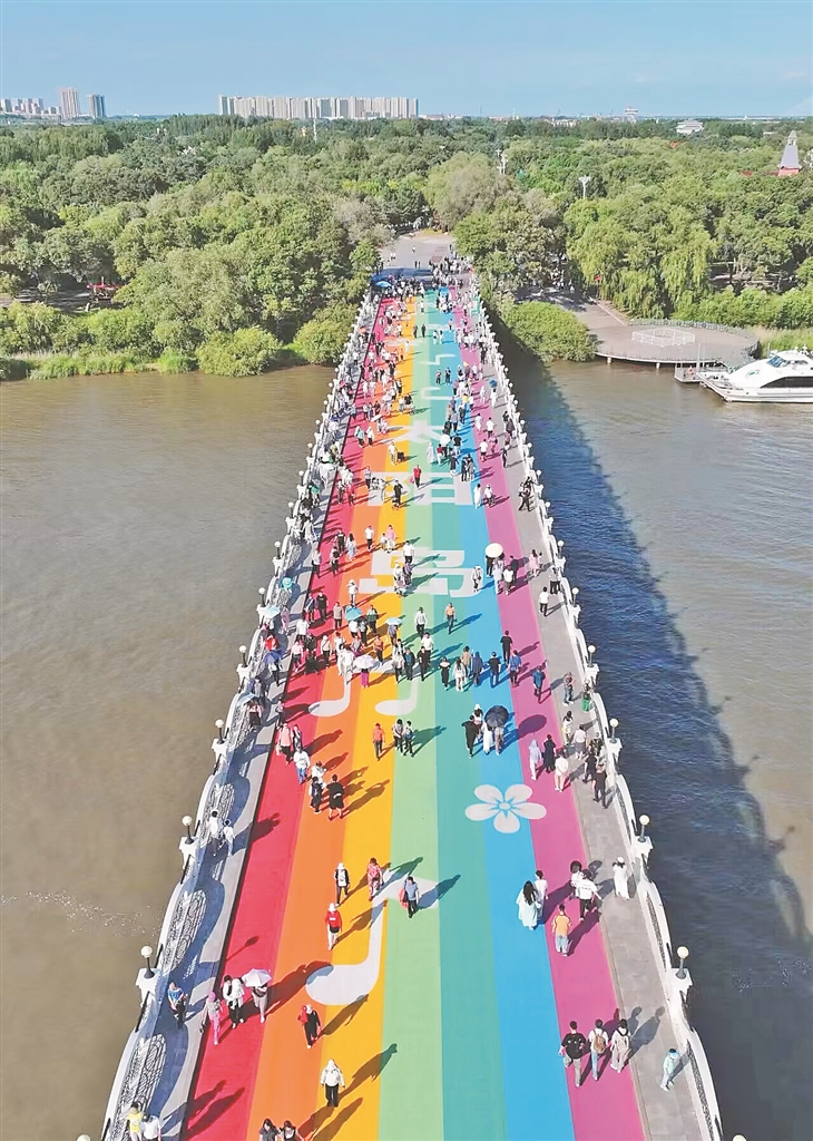 “太阳岛太美了!”来自贵州的岳林老师冲口而出。2024年,布依族退休教师岳林随“小金豆”热潮来哈采风,逗留一年多仍不思归,他多次在视频号中向哈尔滨“表白”。第一次来太阳岛的他,架起长枪短炮兴奋地俯拍、仰拍、卧拍……嚼着列巴工坊的面包,谈起拍哈尔滨建筑、风俗、美食系列的计划,岳老师再度感慨:“哈尔滨拍不够,不想回贵州了!”