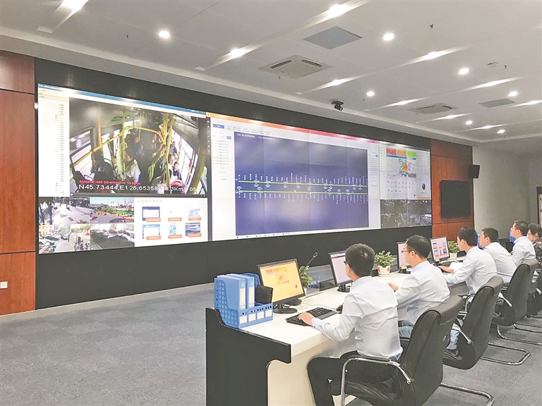 近日,记者在哈尔滨智能交通数据中心看到,巨型屏幕实时显示公交出行数据分析。屏幕上全市公交车分布清晰,点击车辆可查看线路、位置、速度,还能远程观察司机是否接电话、车厢是否拥挤。