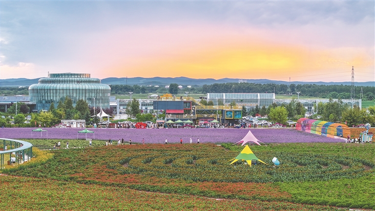 当稻田画与花海相遇,不光有发自内心对现代化大农业建设的感叹,还有对乡村振兴建设取得显著成效的自豪。走进宝泉岭现代农业产业园核心区,占地百亩由紫茉莉、波斯菊、千日红等20多种花卉组成的花海迎来了盛放期,游客置身花的海洋,收获色彩斑斓的美景还有醉人心脾的芳香。