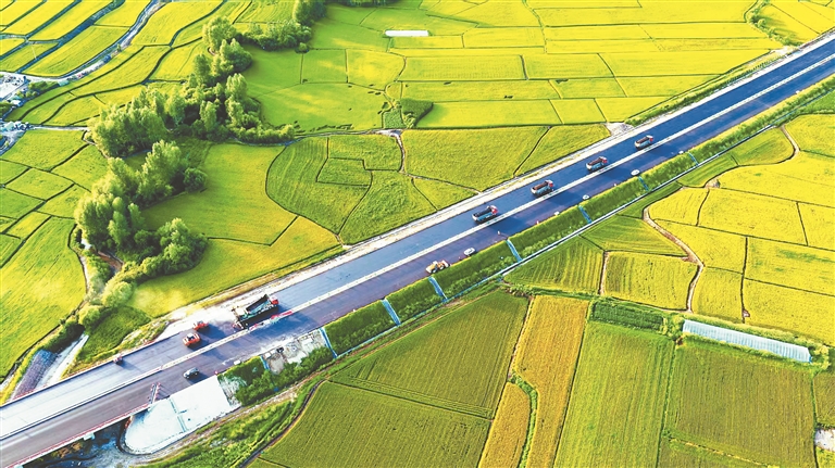 作为全线首个完成沥青混凝土面层合龙的工区,TF1-3工区在施工过程中面临诸多严峻挑战,包括料源供应紧张、汛期降雨频发以及交叉施工带来的高协调难度等。对此,项目部精心策划、统筹布局,强化对人力、机械、材料等多要素的综合协调管理。全线21.1公里,多个作业面并行推进,历经106天的高效奋战,累计完成水稳底基层及基层铺设达90万平方米,沥青面层铺设面积达145万平方米,提前圆满实现主线沥青混凝土面层的合龙目标。
