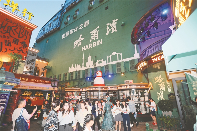 “在这座以俄国工程师肖克命名的历史空间,我们将传统商业记忆与现代消费体验融合。进入暑期以来庭院客流量持续攀升,7月客流更是6月的5倍,纪念品、食品等销量也同步增长。” 肖克庭院运营经理焦颖晶说。