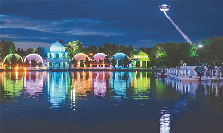 近日,哈尔滨市太阳岛风景区夜公园开放,这里成为游客避暑纳凉的胜地。太阳湖宛如水光幻境,镭射灯将水阁云天的廊桥勾勒成琉璃宫殿。笨熊乐园里,孩子们的欢笑声点亮游乐区。沿栖凤台至太阳瀑的专用车道骑行,江风扑面而来。沿途可以欣赏多处小舞台的音乐演出,充满活力、浪漫四射的太阳岛,将清凉转化为一场视听盛宴。