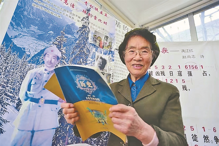 翻看写有“十四年抗战”历史的中小学教科书,李敏露出了欣慰的笑容。