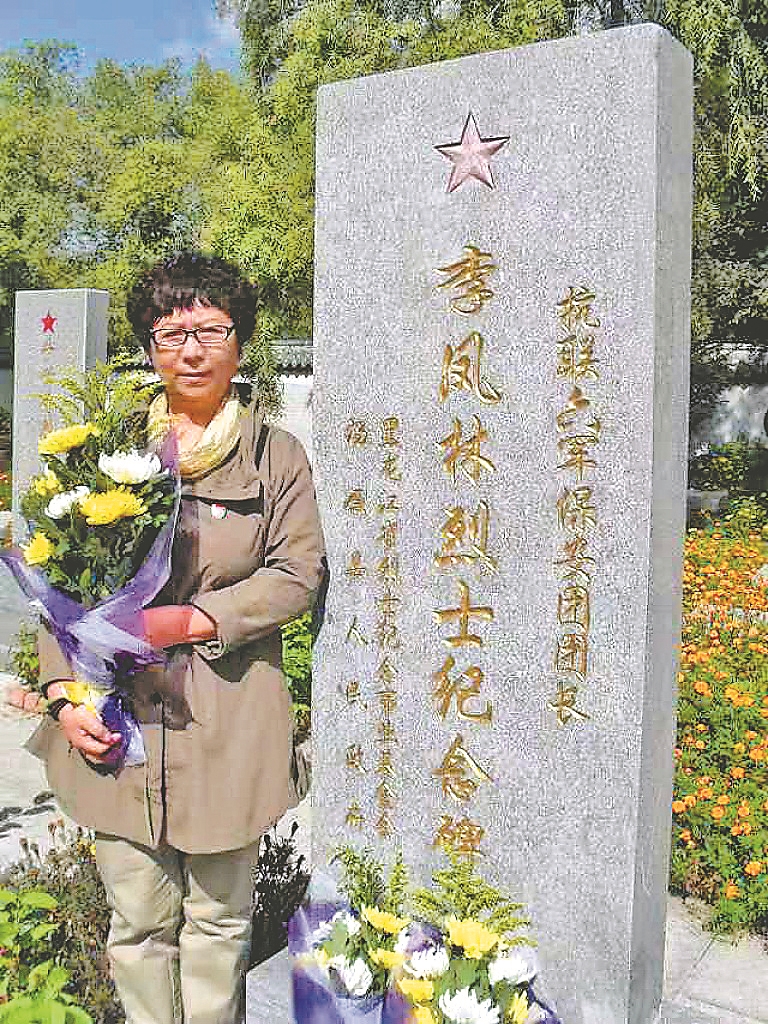 刘颖在舅舅李凤林烈士纪念碑前。图片由受访者提供