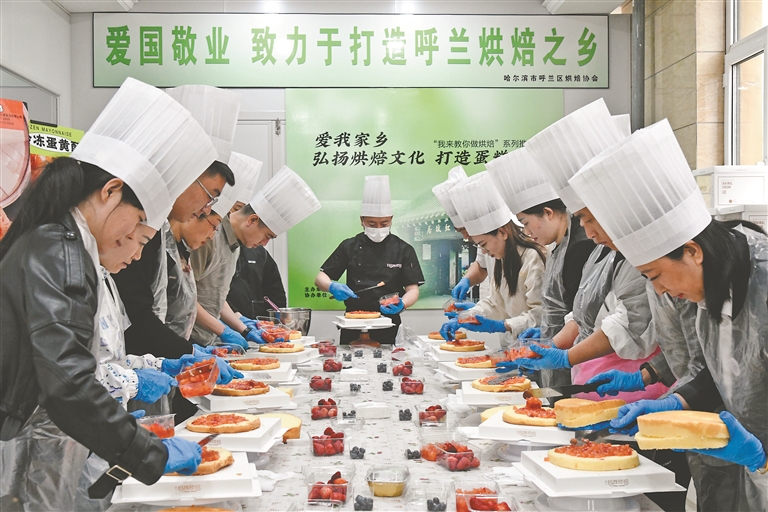 呼兰烘焙协会组织会员举办蛋糕制作体验活动。