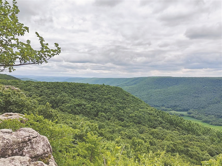 山顶是另一番气派,的确如此,需要用气派这个词汇。站在山顶上,才知道人的眼界天生是宽阔的,世界是广大的。假如一个人后来什么都看不到、领会不了,那不是造物主的缘故。我们的思想被什么困住了或者限制了?但此刻我不会想这个问题,我只想好好发一会呆。是真的发呆,我就坐在一块岩石上直视前方:那神秘的五重山峦,从苍绿到青黛、淡蓝;或者由描摹细腻的工笔树山,到浓墨的写意,再到淡淡的晕染;或者追随一片透过云层的光,看山林如同舞台的光柱打在上面,又瞬间移走。那片亮绿山林突然回归墨绿。五重山不动,却时刻在千变万化,直到大片夕阳的光辉,穿插在黑灰色的云片中,黄和橙击穿之后,层层叠叠斑斓之色将大半个天空渲染得热烈蓬勃……这时候,山风轻盈着逶迤而来,一种难以描述的东西游离于肉体之外,从眼前出发,向五重山的最后一重奔去——这里没有隐喻,这只是一个对生活没有什么抱怨、又经历了半生蹉跎的人,完美的一天罢了。
