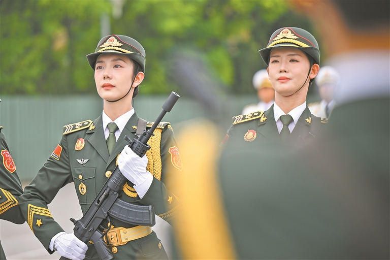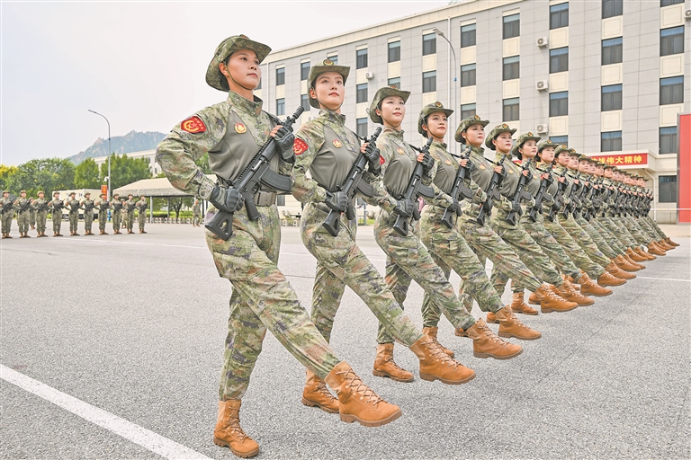 这次阅兵训练坚持实战标准,把阅兵准备作为锤炼官兵战斗作风,检验部队指挥、协同和保障能力的练兵机会,依托战时指挥体制指挥阅兵行动,采取作战推演方式研推方案计划;注重科学训练,利用北斗定位、智能评估等系统和模拟仿真手段,辅助开展基础训练、编队训练、空地协同训练、复杂场景训练、特情处置训练,以及训练的考核评估;激发练兵动力,用抗战精神强化历史担当,用光荣受阅激发政治热情,用英模部队传统激励高昂斗志。