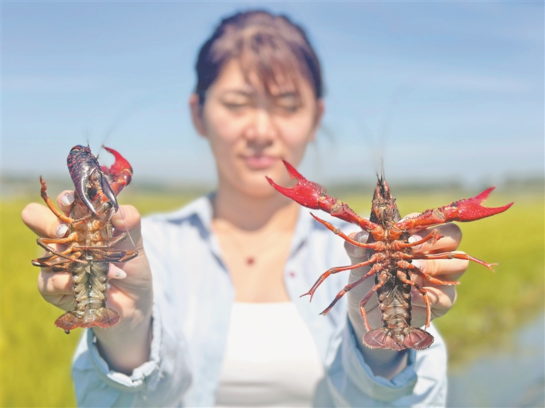 哈尔滨市农业科学院水产分院院长、寒地小龙虾团队负责人董宏伟介绍:“黑龙江省冬季漫长且寒冷,冰封期长达5个月,冰层厚度可达100厘米,传统认知中并不适合小龙虾生存。团队集结顶尖力量,历经反复试验,成功攻克低温环境下小龙虾生长繁殖的技术瓶颈,首创‘南繁北养、自繁自养、繁育养分离’的寒地养殖技术,制定了关键养殖标准。其中,虾稻共作模式成效显著。在保证水稻不减产的前提下,可减少化肥、农药使用量15%以上,亩均节本近70元、增收超500元,生态虾稻米价格翻倍,真正实现‘一水两用、一田双收’,构建起生态与经济双赢的新格局。”