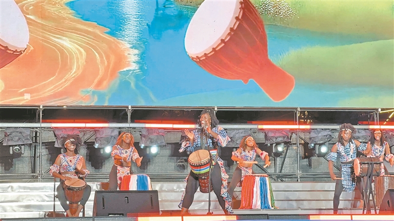 冈比亚鼓秀。本报记者 李爱民摄