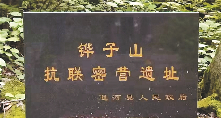 从通河县城出发,驱车北行15公里,岔林河西岸密林深处。顺着山路上行不远,青松翠柏环抱中,一块醒目的黑色石碑上,“铧子山抗联密营遗址”九个大字庄严肃穆。
