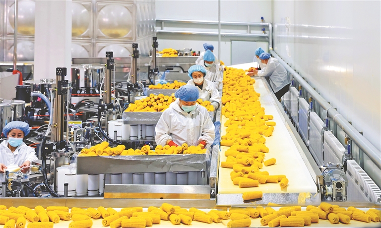 在北纬四十七(克东县)绿色有机食品有限公司加工车间内,自动化生产线高速运转,刚采收回来的玉米在这里经过脱皮、分拣、清洗、蒸煮、塑封等一系列精细工序,在短短3小时内完成锁鲜,随后将发往全国各地,摆上消费者的餐桌。