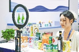 参展商在第十五届中国-东北亚博览会现场进行线上直播。新华社发