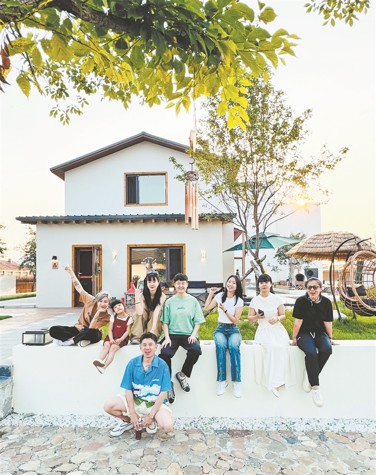 在松峰山周边,三清民宿成了不少游客“栖居山野”的选择。三清民宿位于松峰山镇松峰村三清屯,占地2.7万平方米,是城市人寻觅田园诗意的热门去处,节假日常常一房难求。据悉,民宿分为两期建设,其中一期设有观山民宿、乡野茶室等,二期新增乡村公益图书馆、滨河休闲区、社区农场、登山露营地等,可满足游客的多元需求。据三清民宿负责人刁旺盛介绍,项目盘活了12处闲置房屋,形成民宿集群,带动30余名村民参与改造,增收超80万元,另有12人实现长期就业,旅游旺季时还需招聘短工,有效助力村民致富。