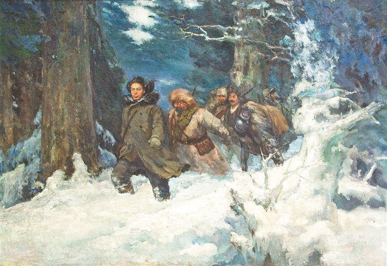 油画《艰苦西征》。