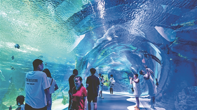 太阳岛风景区以多元浪漫景观为游客带来沉浸式体验,而与其毗邻而居的哈尔滨极地公园则通过特色场景复刻与场馆升级,同样为游客打造了难忘的游玩记忆。1∶1复刻意大利“蘑菇小镇”阿尔贝罗贝洛与摩洛哥“蓝色小镇”舍夫沙万两大世界级童话小镇,开放全国首个多维感官沉浸式全景深海隧道……“之前就听说哈尔滨极地公园很有特色,这次专门带孩子来,果然没让人失望,尤其是深海隧道,太震撼了。”来自江苏的张先生直言不虚此行。“进入暑期,极地公园客流量一直很饱满。”哈尔滨极地公园副总经理任世博说。