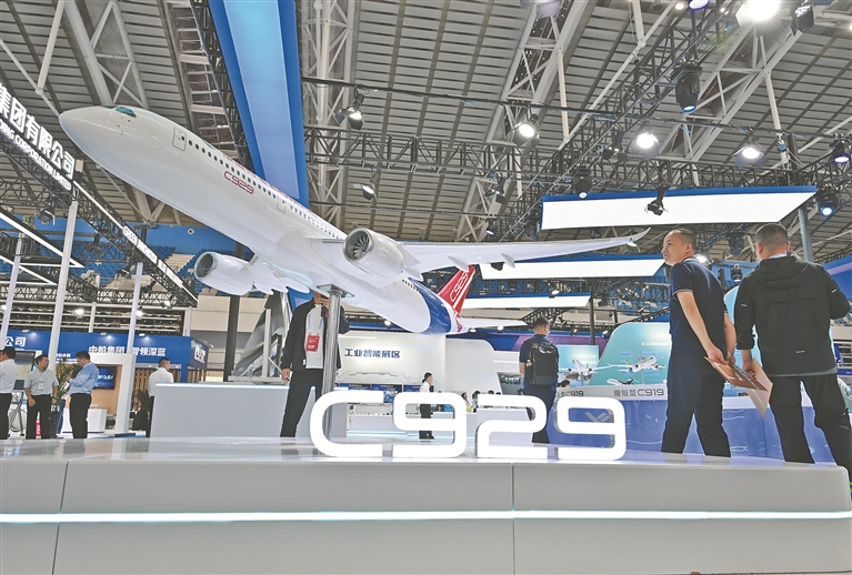 图①:大型的C929飞机模型吸引众多观众围观。