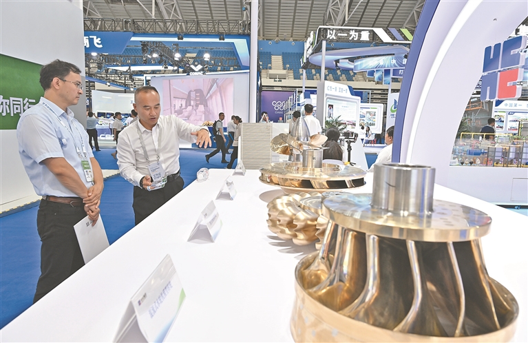 图③:展出的混流式水轮机模型转轮。