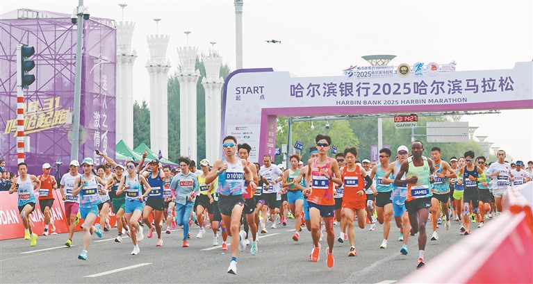本报8月31日讯(记者邢汉夫 刘瑞)8月31日7时30分,在哈尔滨音乐公园音乐长廊,哈尔滨银行2025哈尔滨马拉松鸣枪开赛,来自国内外的3.5万名跑友热力集结,共赴奔跑之约。