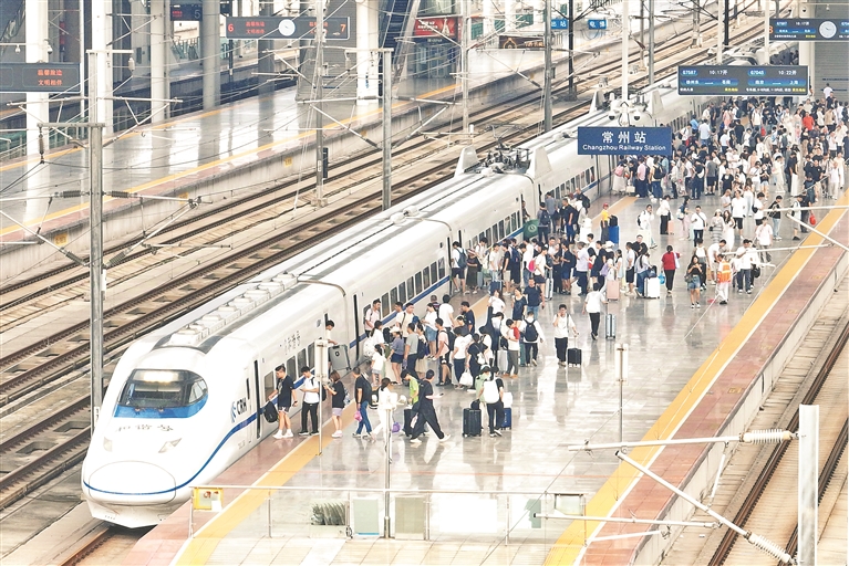 8月31日,旅客在江苏常州火车站乘车出行(无人机照片)。
