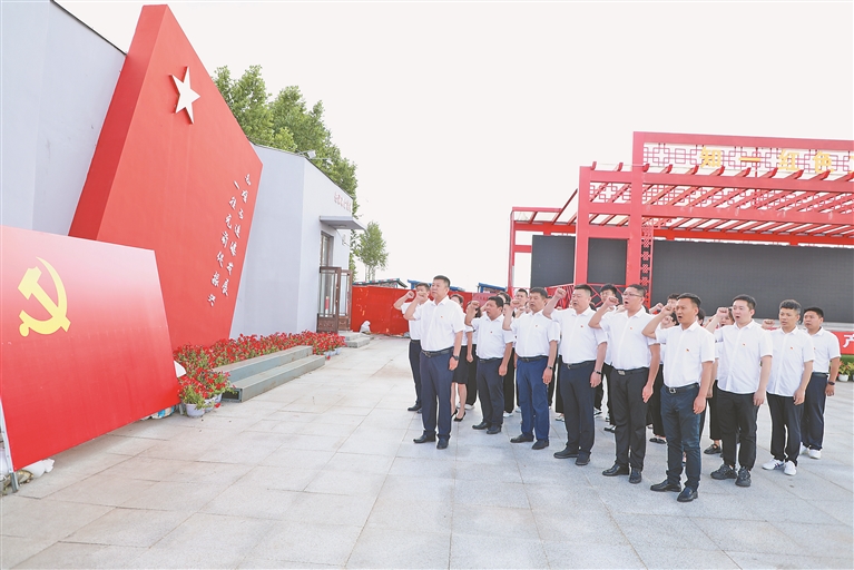 鸡西市密山市纪委监委党员干部在知一镇红色历史展馆党旗下庄严宣誓。齐乐摄
