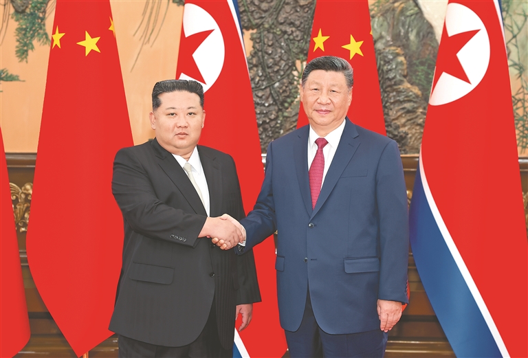 习近平指出,中朝是命运与共、守望相助的好邻居、好朋友、好同志。中朝友谊源远流长,两国都是共产党领导的社会主义国家,有着共同的理想信念和奋斗目标。金正恩总书记来华出席纪念中国人民抗日战争暨世界反法西斯战争胜利80周年活动,体现了朝方维护二战胜利成果的坚定意志,也为中朝两党两国进一步发展友好合作关系提供了重要契机。