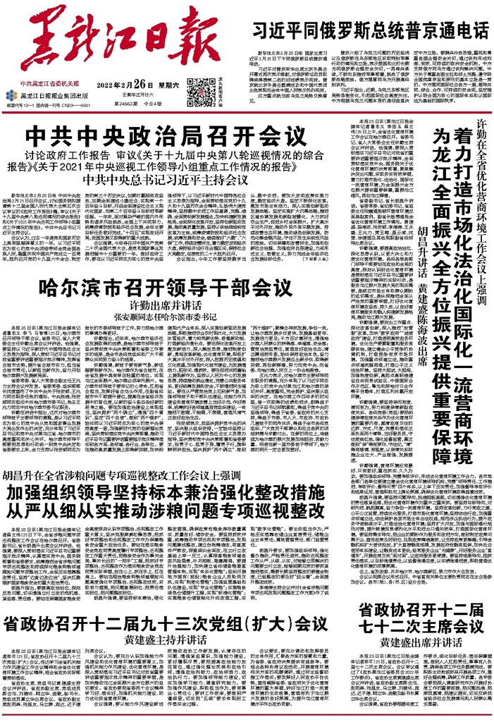 本报25日讯(黑龙江日报全媒体记者薛立伟)25日下午,全省涉粮问题专项巡视整改工作会议在哈尔滨召开。省委副书记、省长胡昌升出席会议并讲话。他强调,要深入贯彻落实习近平总书记重要指示批示精神,认真落实党中央、国务院部署和省委