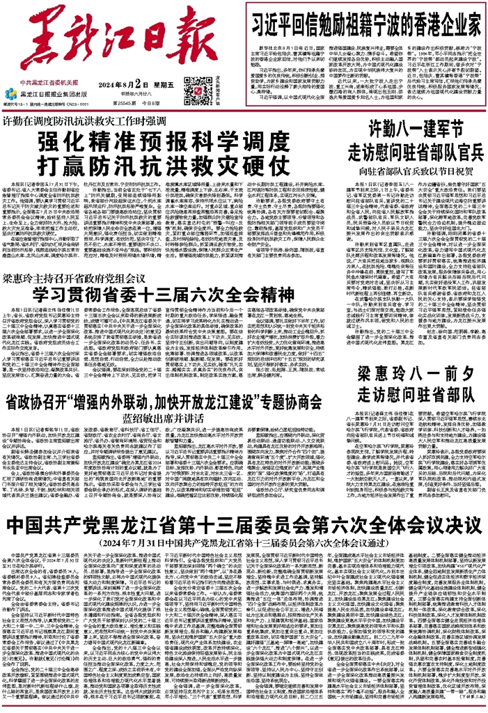 本报讯(记者桑蕾)7月31日,中共黑龙江省委在哈尔滨召开党外人士座谈会,深入学习领会中共二十届三中全会、中央党外人士座谈会精神,传达学习中共省委十三届六次全会精神,通报全省上半年经济工作情况,听取党外人士意见和建议。省委常