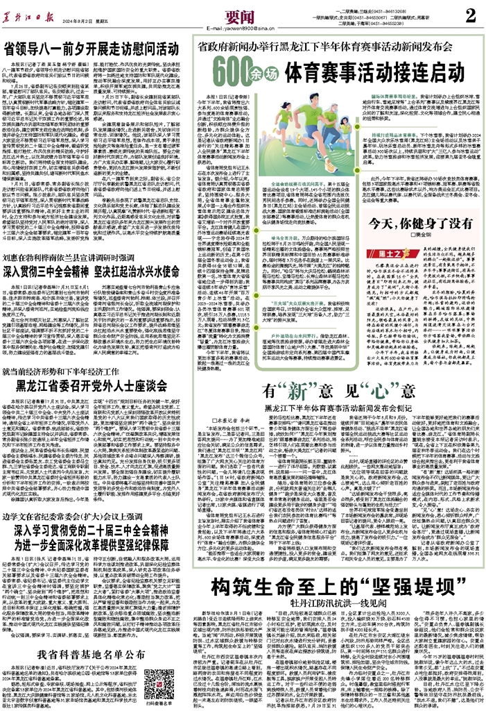 本报1日讯(记者李晶琳)7月31日至8月1日,省委常委、政法委书记刘惠到七台河市勃利县、佳木斯市桦南县、哈尔滨市依兰县,宣讲党的二十届三中全会精神和省委十三届六次全会精神,并深入倭肯河巡河,实地检查河流沿线应急度汛工作。<