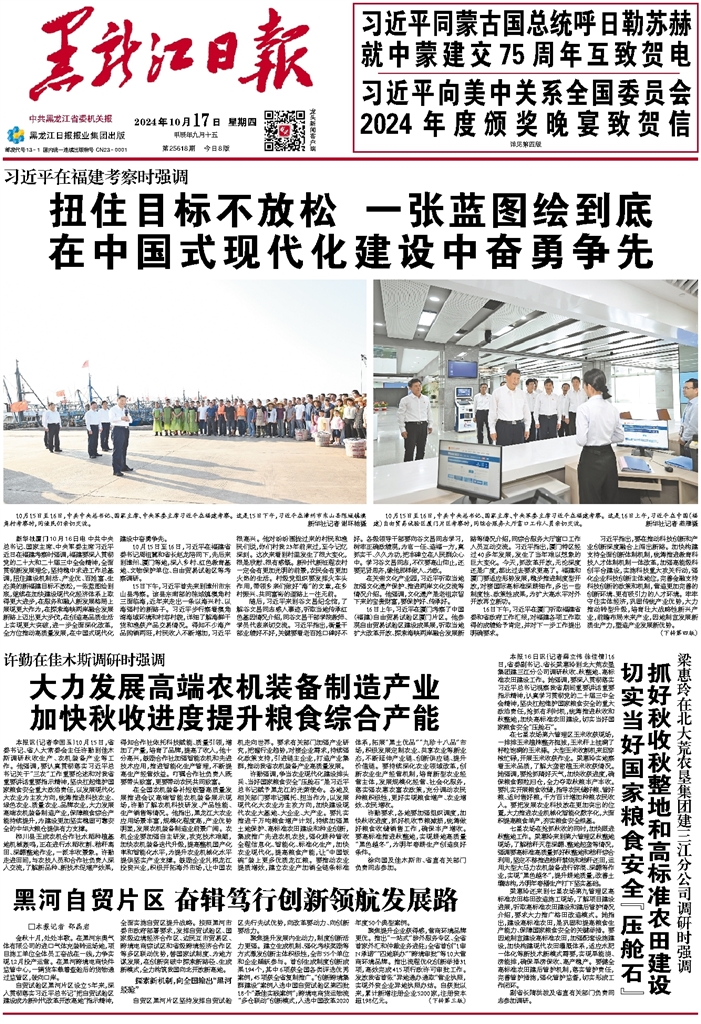金秋十月,处处丰歌。在黑河东奥气体有限公司的进口气体充装转运场地,项目施工单位全体员工奋战在一线,力争实现12月投产运营。在黑河跨境电商快件监管中心,一辆货车载着查验后的货物通过监管