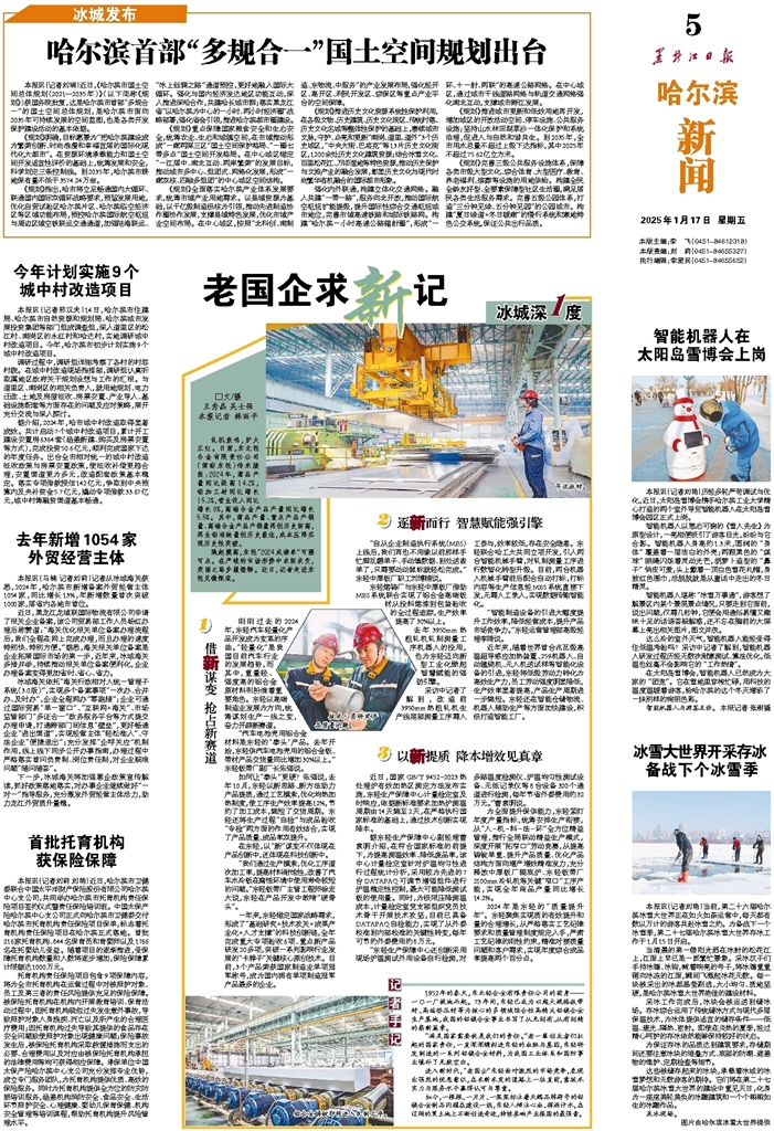 本报讯(记者刘瑞)近日,《哈尔滨市国土空间总体规划(2021—2035年)》(以下简称《规划》)获国务院批复,这是哈尔滨市首部“多规合一”的国土空间总体规划,是哈尔滨市面向2035年可持续发展的空间蓝图,也是各类开发保护建