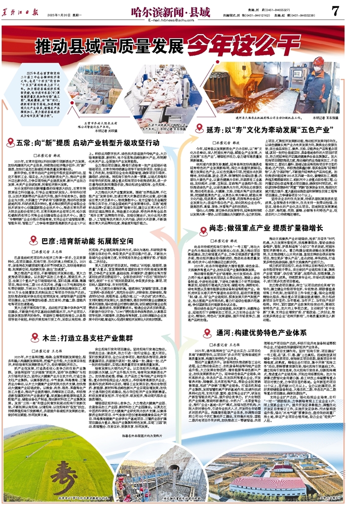 2025年是全面贯彻党的二十届三中全会精神的开局之年,也是“十四五”收官和“十五五”谋划的承上启下之年。加力推进县域经济实现新突破,哈尔滨市各县(市)聚焦高质量发展加快勾勒“施工图”,跳起摸高,向“新”而行,狠抓项目招引落地,加速构