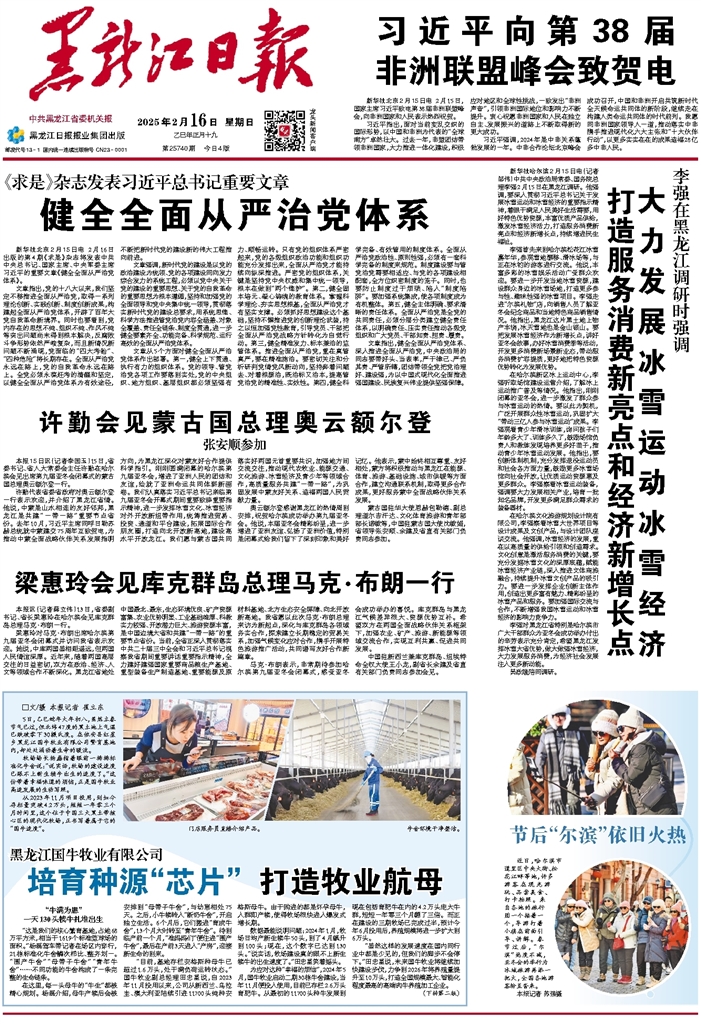 新华社哈尔滨2月15日电(记者邹伟)中共中央政治局常委、国务院总理李强2月15日在黑龙江调研。他强调,要深入贯彻习近平总书记关于发展冰雪运动和冰雪经济的重要指示精神,着眼于满足人民美好生活需要,用好特色优势资源,丰富优质产